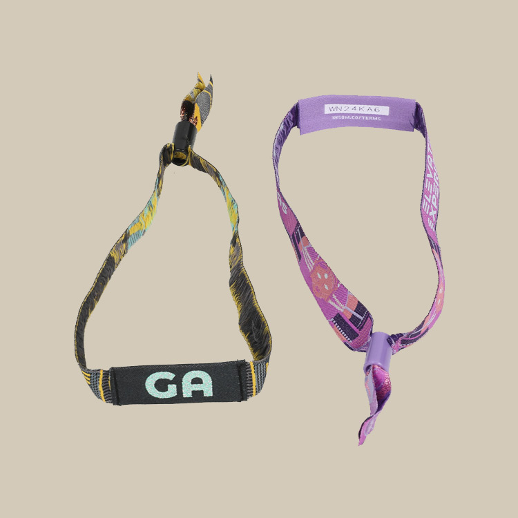 The two main finishes of fabric wristbands are woven or printed polyester. Our woven wristbands are made up of up to 8 coloured threads and are the kind of wristbands commonly associated with festivals. Our printed fabric wristbands use a dye-sublimation method to avoid the loss of colour due to friction and ensure that the design remains within the structure of the fabric. It also allows any full-colour design to be transferred option to the band for a bright and vivid effect so you can rest assured your fabric wristbands are of the highest quality.